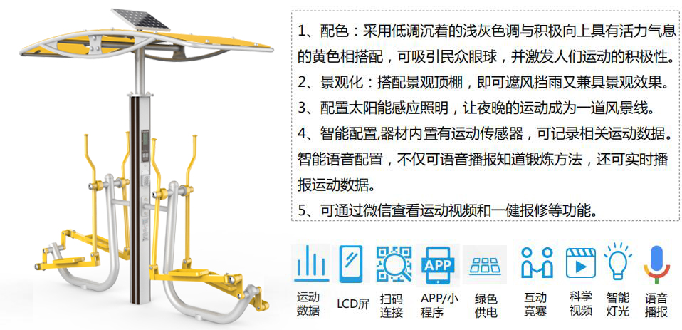 星空xk全民健身产品涵盖健身路径、运动场馆、篮乒气羽排等产品,分为多个系列,先进的制造工艺、严苛的质量检测,确保产品性能优良、品质安全可靠,让运动简单科学。并将全民健身器材(户外路径器材、体育场馆等产品)进行智能化升级和互联,实现全人群覆盖、全场景智能,让运动赞美生活。