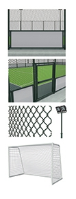 配套器材:一体式足球门篮球架、多功能网柱、智能门禁、顶网系统、音响广播系统、监控系统等