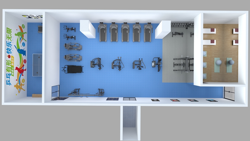 此方案要求面积小于220平米,适用于企事业单位健身房、酒店会所健身房、学校健身房、部队健身房、商用健身房、楼盘社区,能满足20-30人同时健身使用。