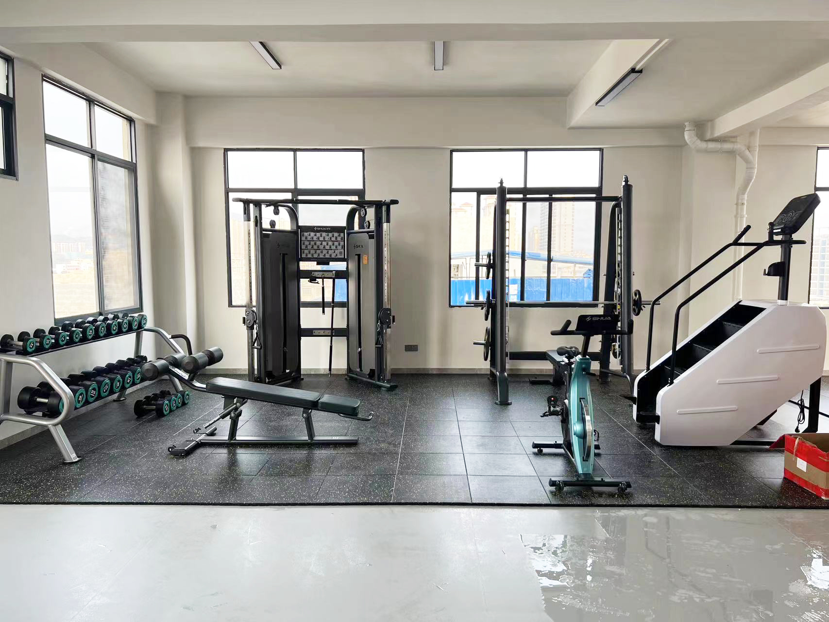 力量器械配置了星空xk可调式双滑轮多功能训练器(小飞鸟)SH-G6820、史密斯机训练架SH-G6853、腹肌练习椅SH-G6879 、康健10付哑铃套组,依据锻炼方式不同,能够满足日常多肌群训练(胸、肩、背、腿),让企事业职工在有限的器材里能够得到全方位锻炼身体肌肉。让职工身体更健硕,在工作中释放激情活力,打造完美职场形象。在运动过程中增进职工之间的情感交流,促进各部门紧密融合,增强职工归属感,增强企事业的凝聚力。