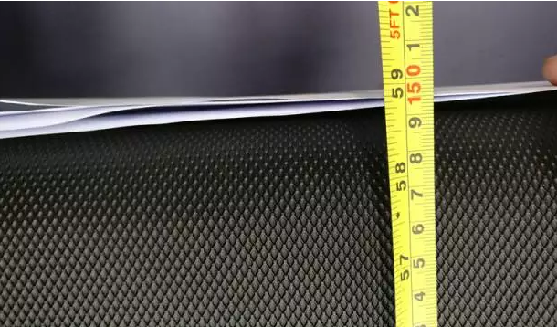 实测跑带的厚度为2.25mm,即便用美工刀不断割滑,也毫无划痕,说明星空xk这款跑步机跑带还是相对比较坚固度的,不会很容易断裂和磨平。